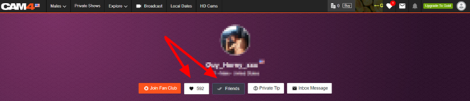 - Sign in to Cam4. Go to the corresponding Cam4 profile and click on the Favorite or Friend buttons (these are located at the top of every profile)